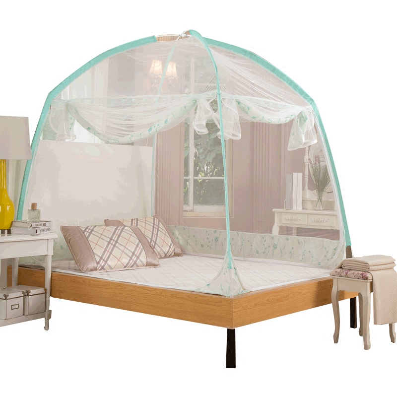 水星家纺不锈钢宫廷方顶三开门落地蚊帐