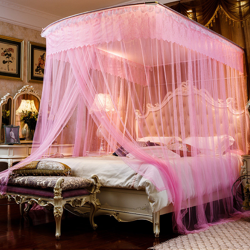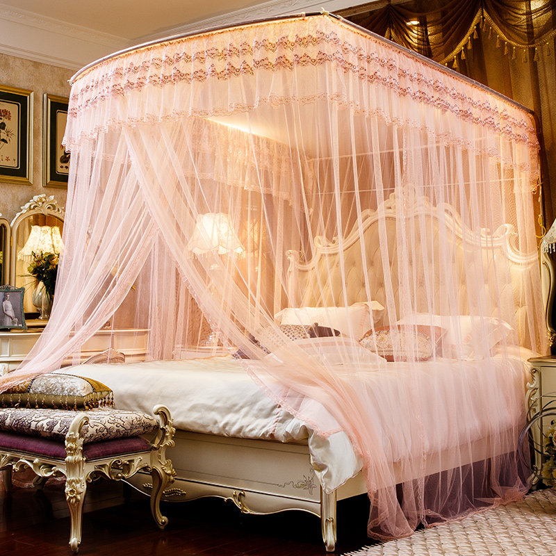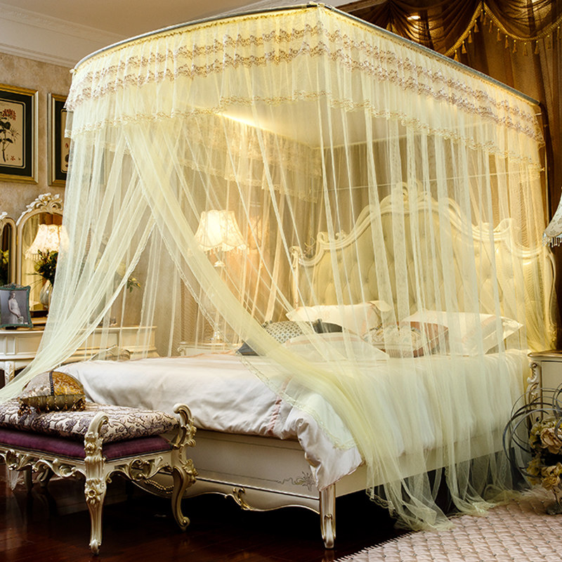 水星家纺不锈钢宫廷方顶三开门落地蚊帐