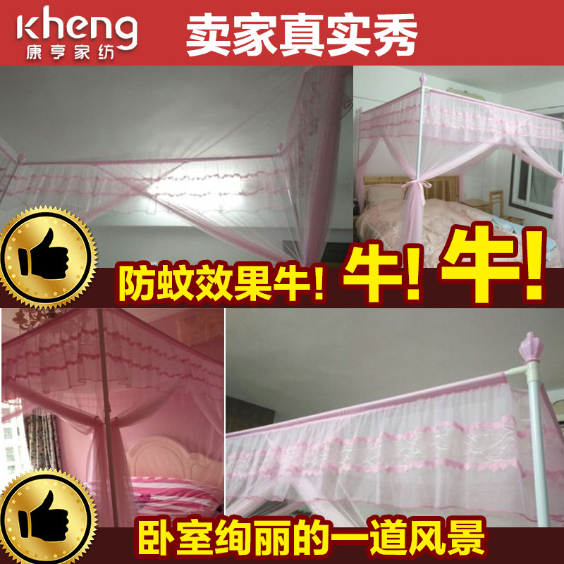 水星家纺不锈钢宫廷方顶三开门落地蚊帐