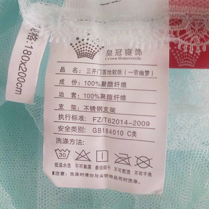 水星家纺不锈钢宫廷方顶三开门落地蚊帐
