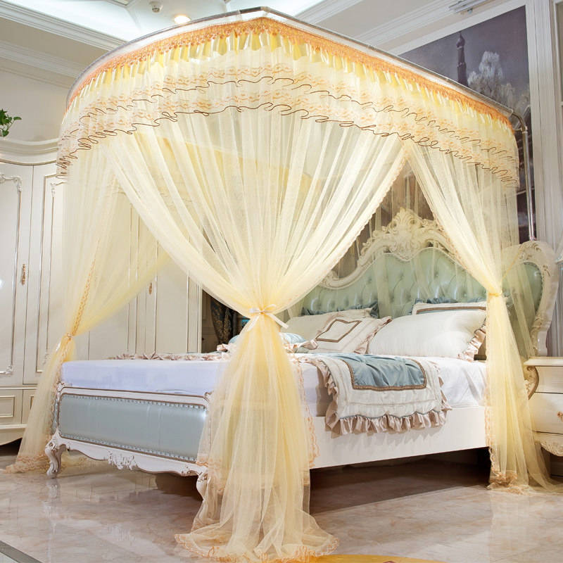 水星家纺不锈钢宫廷方顶三开门落地蚊帐