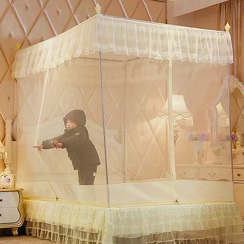 水星家纺不锈钢宫廷方顶三开门落地蚊帐
