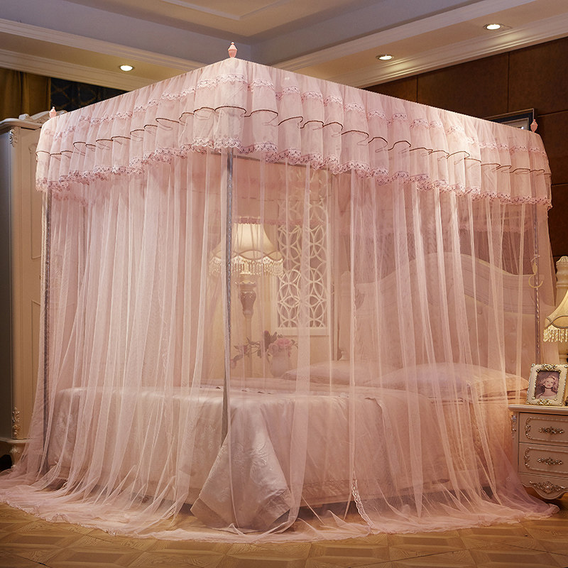 水星家纺不锈钢宫廷方顶三开门落地蚊帐