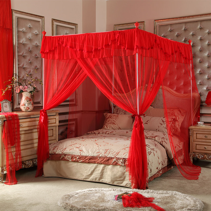 水星家纺不锈钢宫廷方顶三开门落地蚊帐