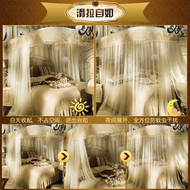 水星家纺不锈钢宫廷方顶三开门落地蚊帐