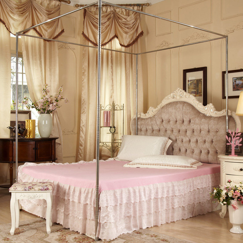 水星家纺不锈钢宫廷方顶三开门落地蚊帐