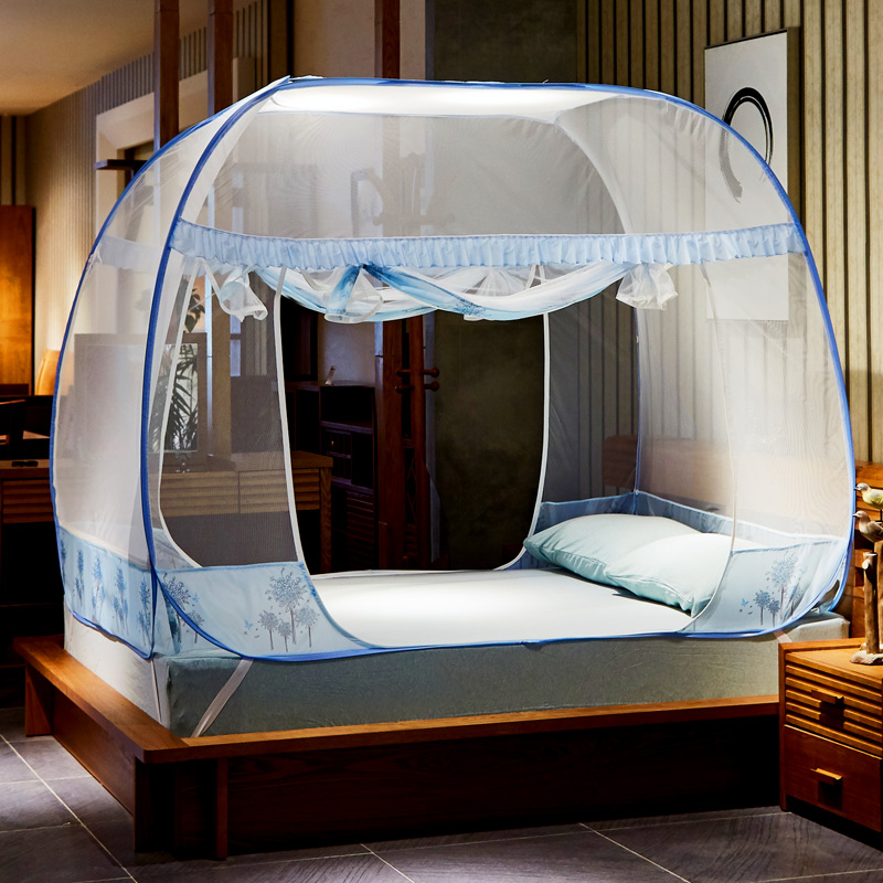 水星家纺不锈钢宫廷方顶三开门落地蚊帐