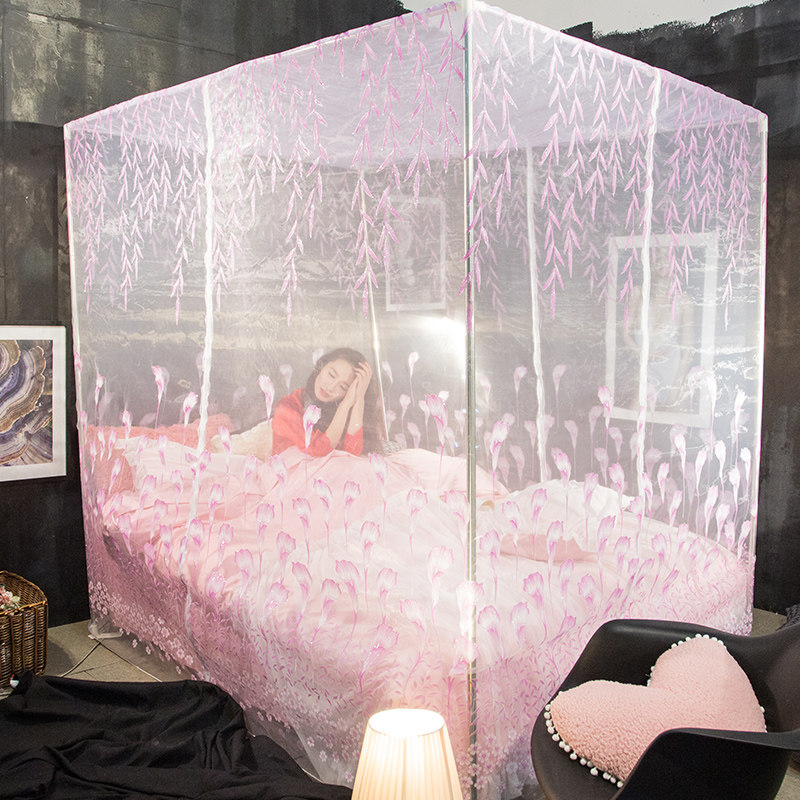 水星家纺不锈钢宫廷方顶三开门落地蚊帐