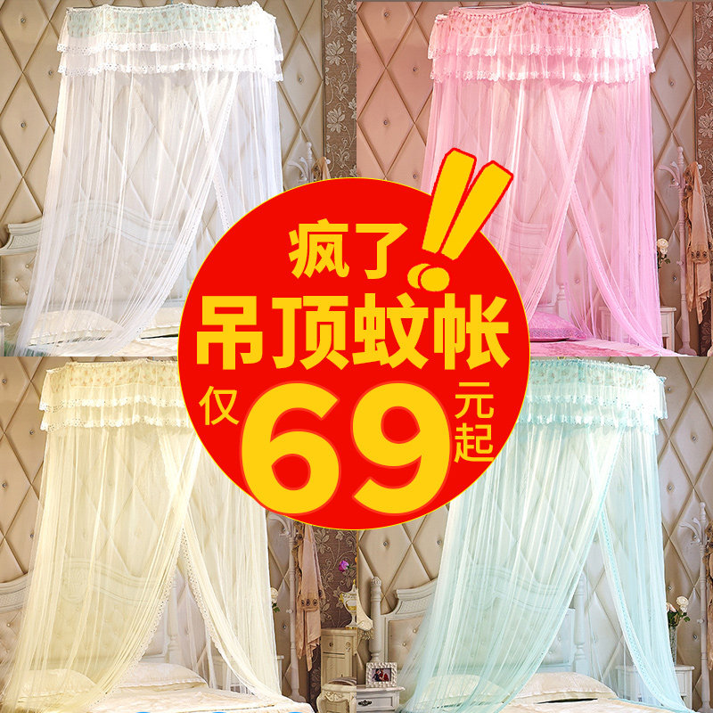水星家纺不锈钢宫廷方顶三开门落地蚊帐