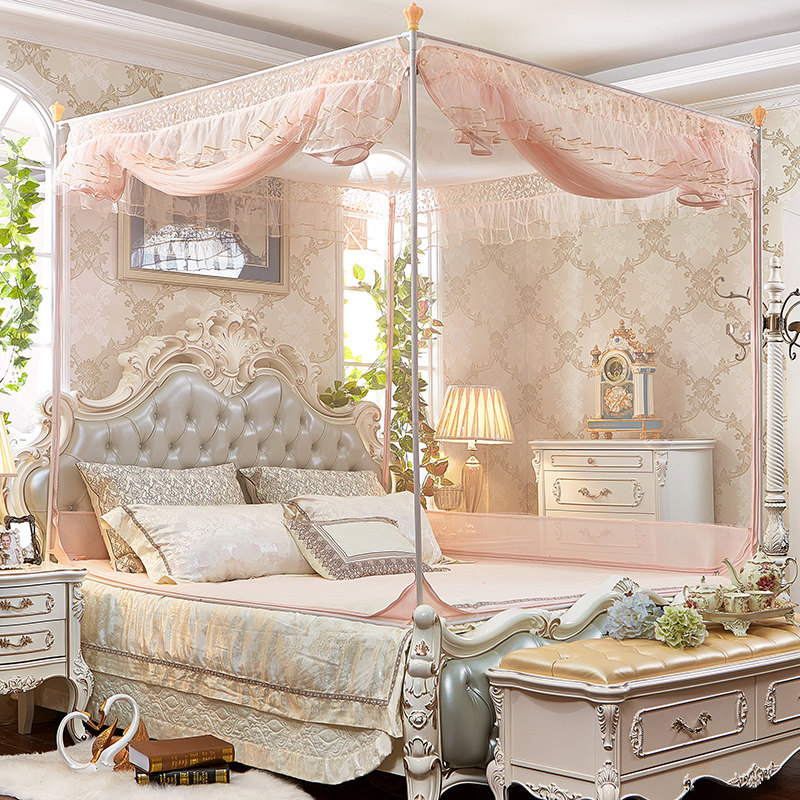 水星家纺不锈钢宫廷方顶三开门落地蚊帐