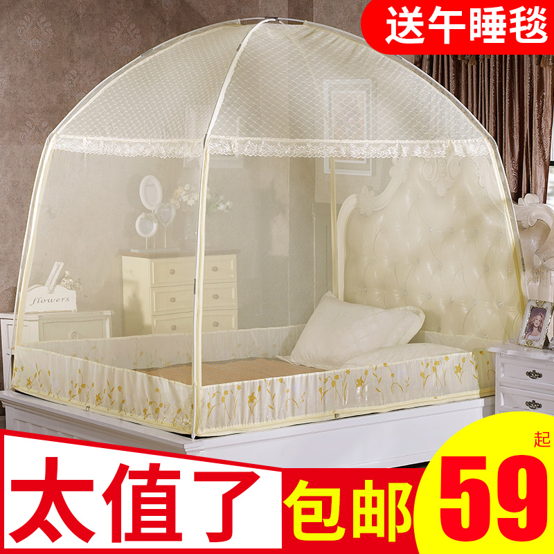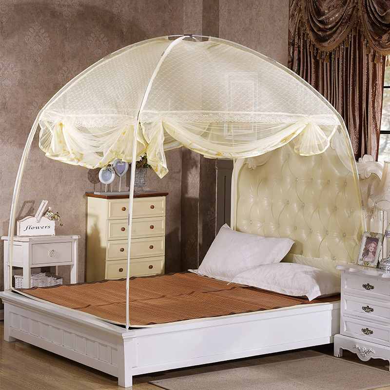 水星家纺不锈钢宫廷方顶三开门落地蚊帐