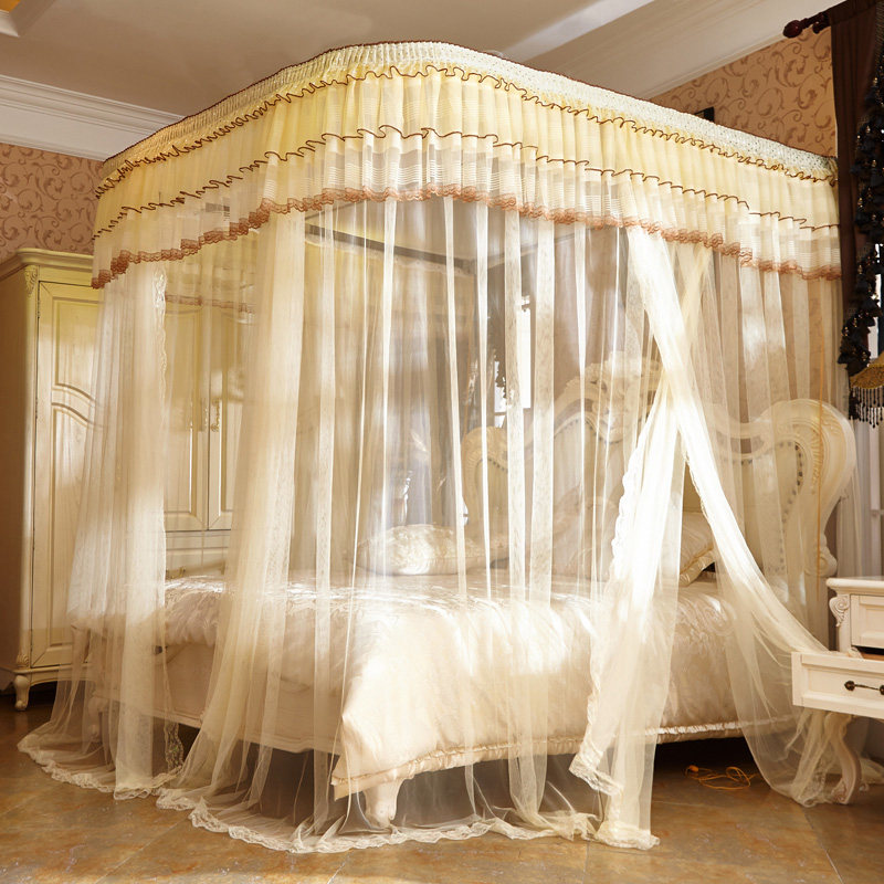 水星家纺不锈钢宫廷方顶三开门落地蚊帐