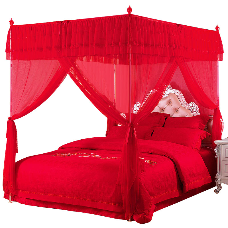 水星家纺不锈钢宫廷方顶三开门落地蚊帐