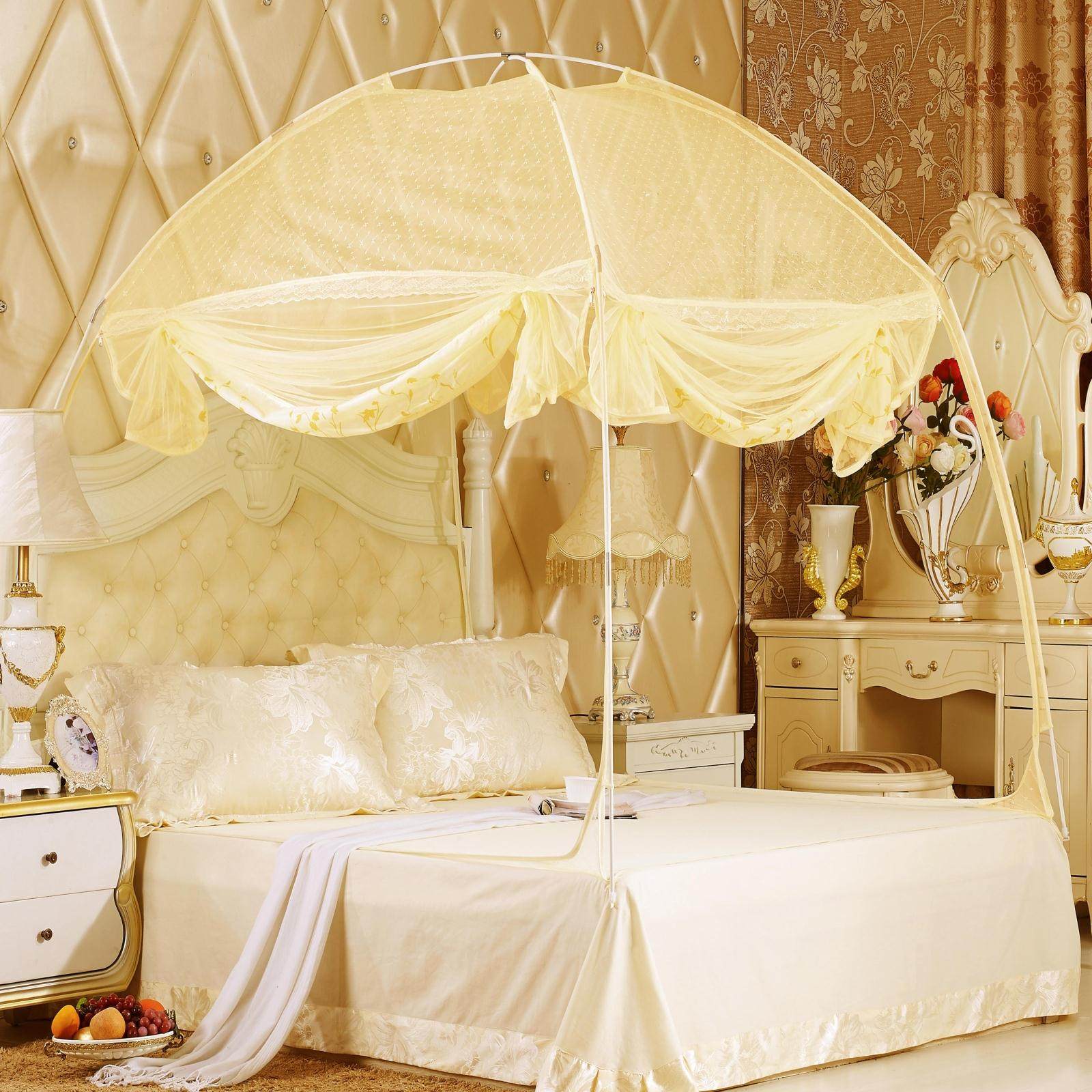 水星家纺不锈钢宫廷方顶三开门落地蚊帐