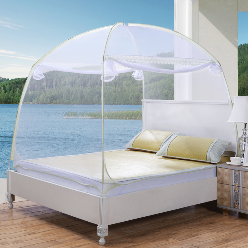水星家纺不锈钢宫廷方顶三开门落地蚊帐