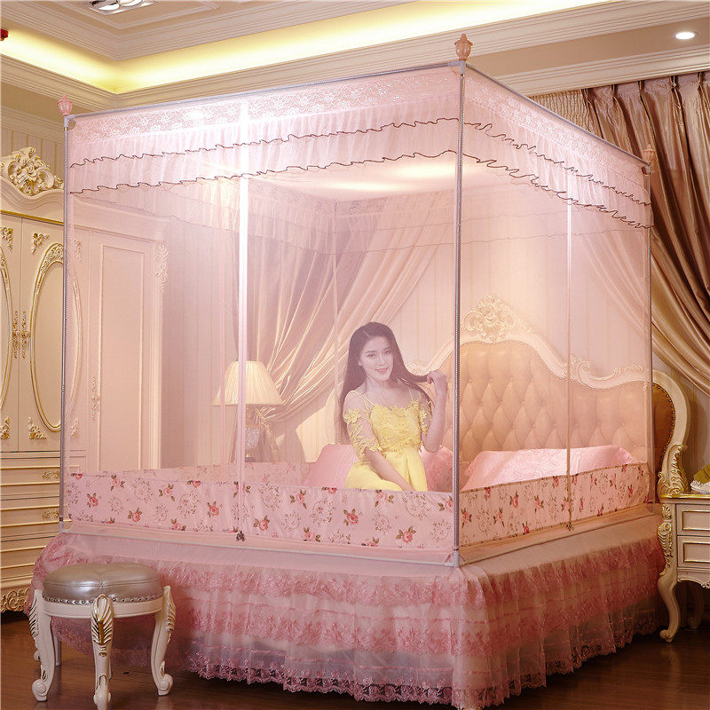 水星家纺不锈钢宫廷方顶三开门落地蚊帐