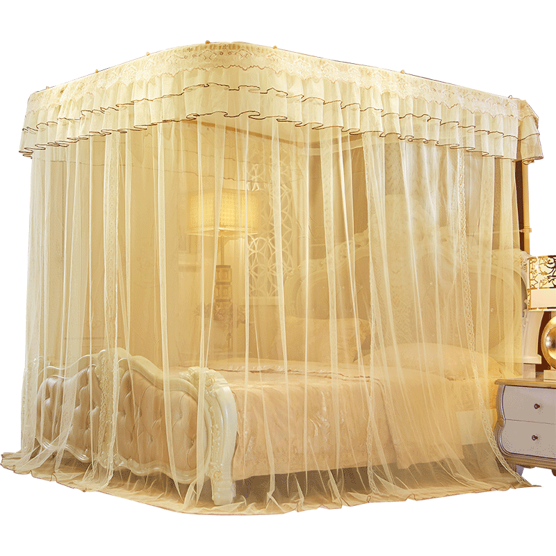 水星家纺不锈钢宫廷方顶三开门落地蚊帐