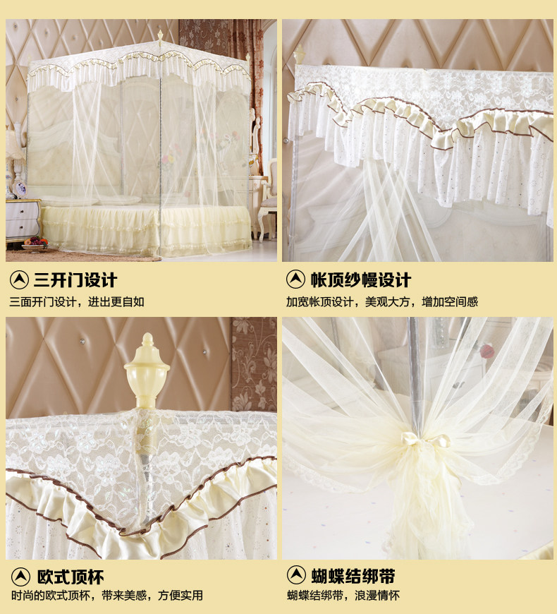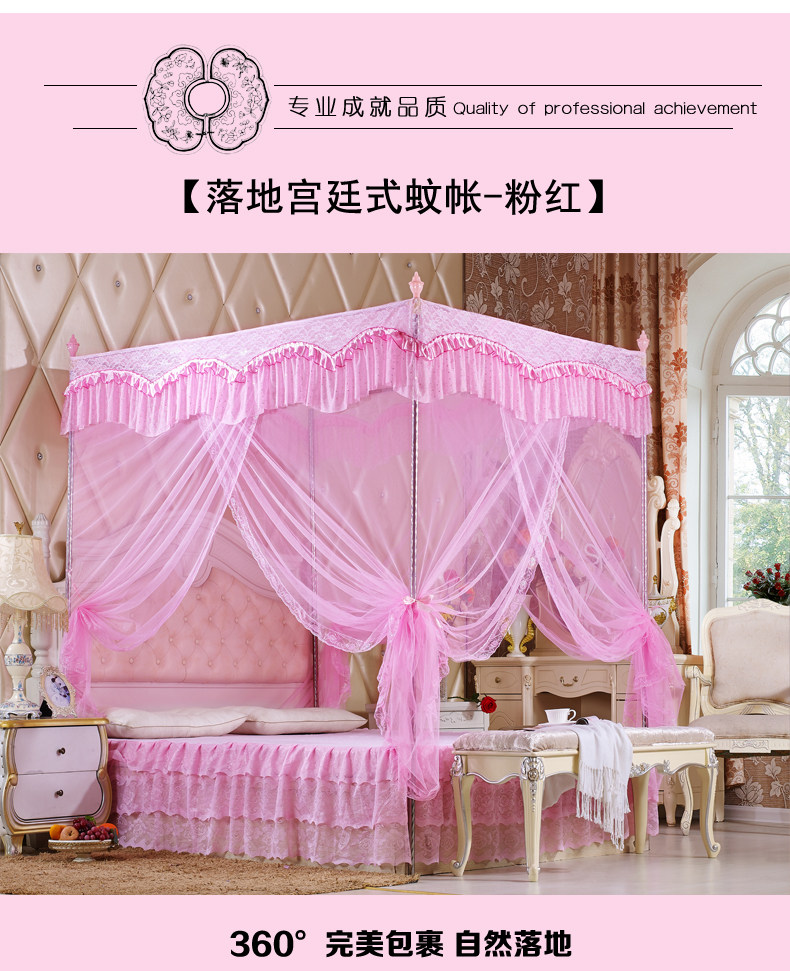 水星家纺不锈钢宫廷方顶三开门落地蚊帐