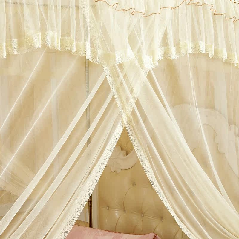 水星家纺不锈钢宫廷方顶三开门落地蚊帐