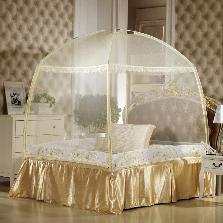 水星家纺不锈钢宫廷方顶三开门落地蚊帐