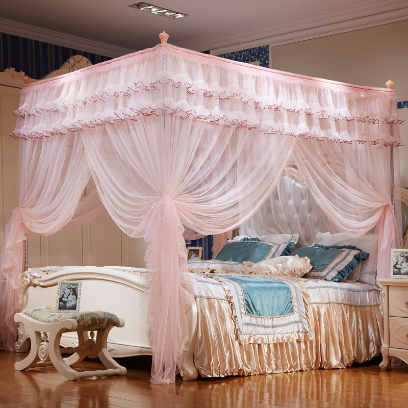 水星家纺不锈钢宫廷方顶三开门落地蚊帐