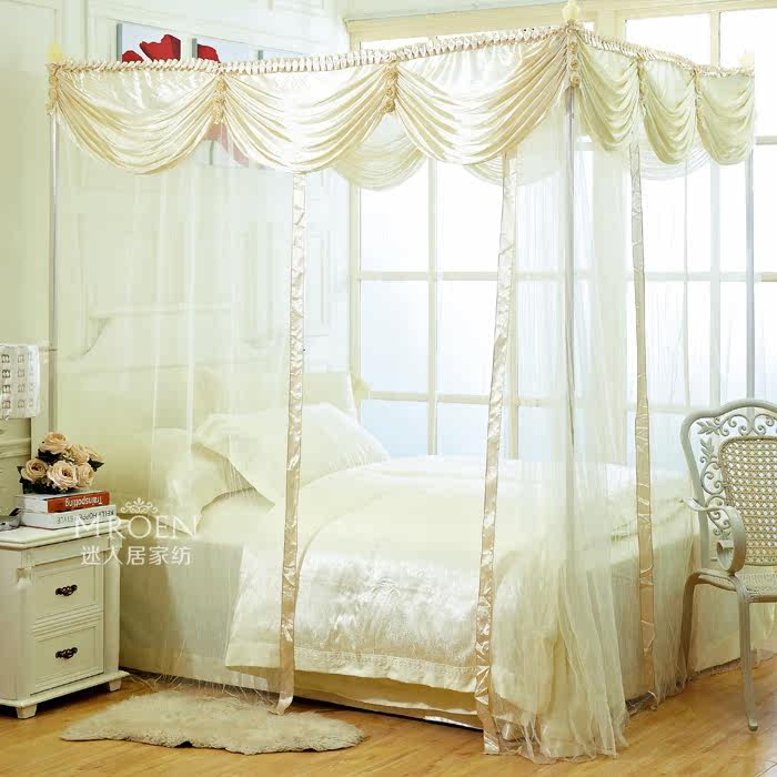 水星家纺不锈钢宫廷方顶三开门落地蚊帐
