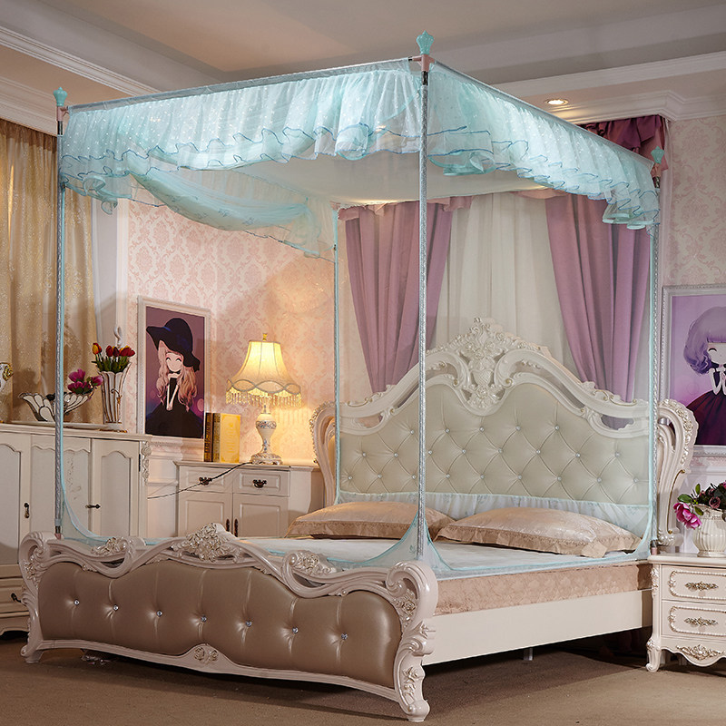 水星家纺不锈钢宫廷方顶三开门落地蚊帐