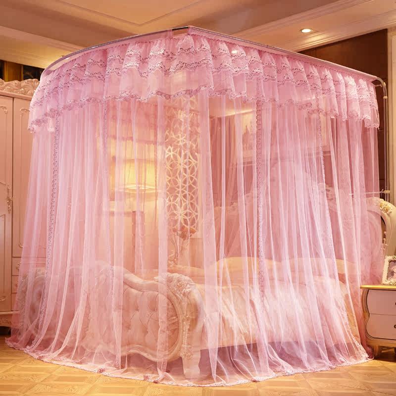 水星家纺不锈钢宫廷方顶三开门落地蚊帐