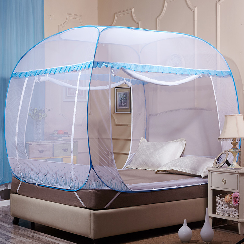 水星家纺不锈钢宫廷方顶三开门落地蚊帐