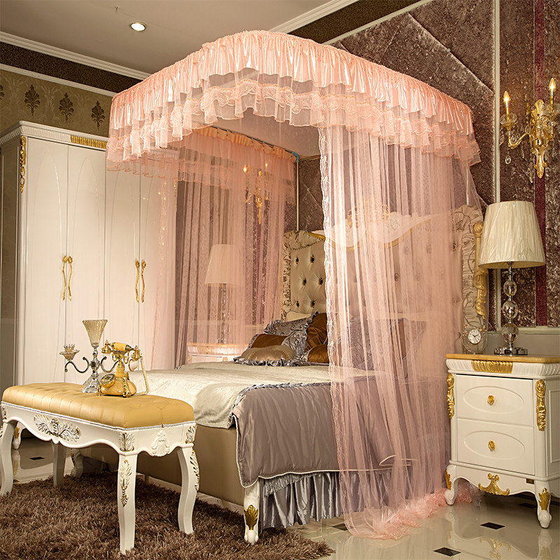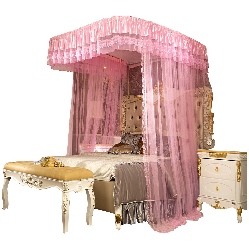 水星家纺不锈钢宫廷方顶三开门落地蚊帐