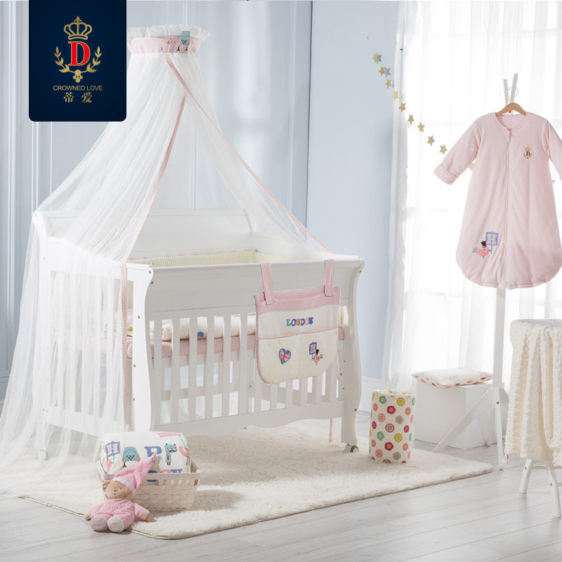 蒂爱婴儿房床+床品七件套+蚊帐克雷斯顿