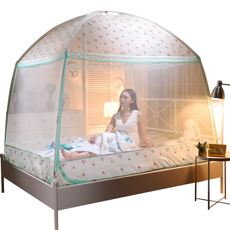 水星家纺不锈钢宫廷方顶三开门落地蚊帐