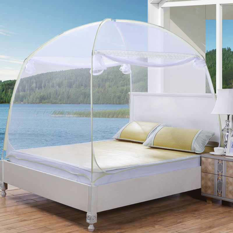 水星家纺不锈钢宫廷方顶三开门落地蚊帐