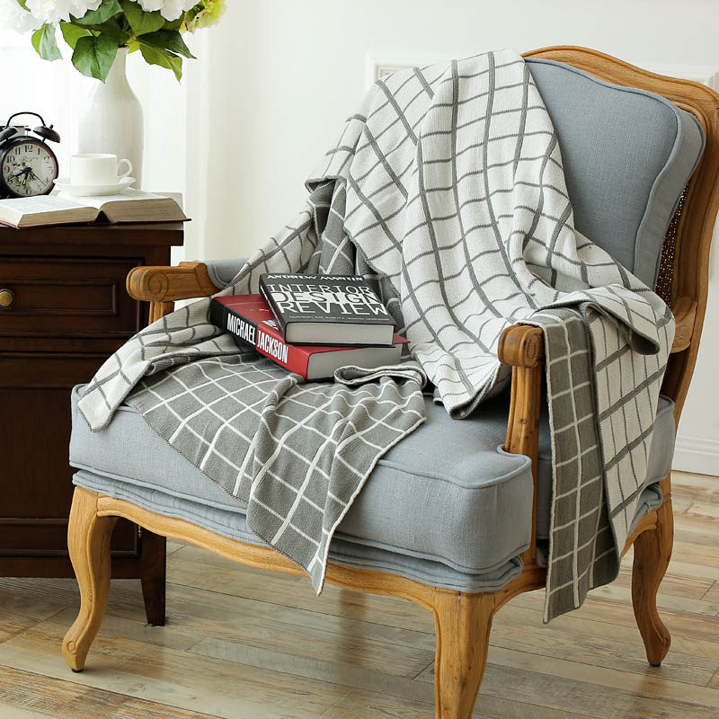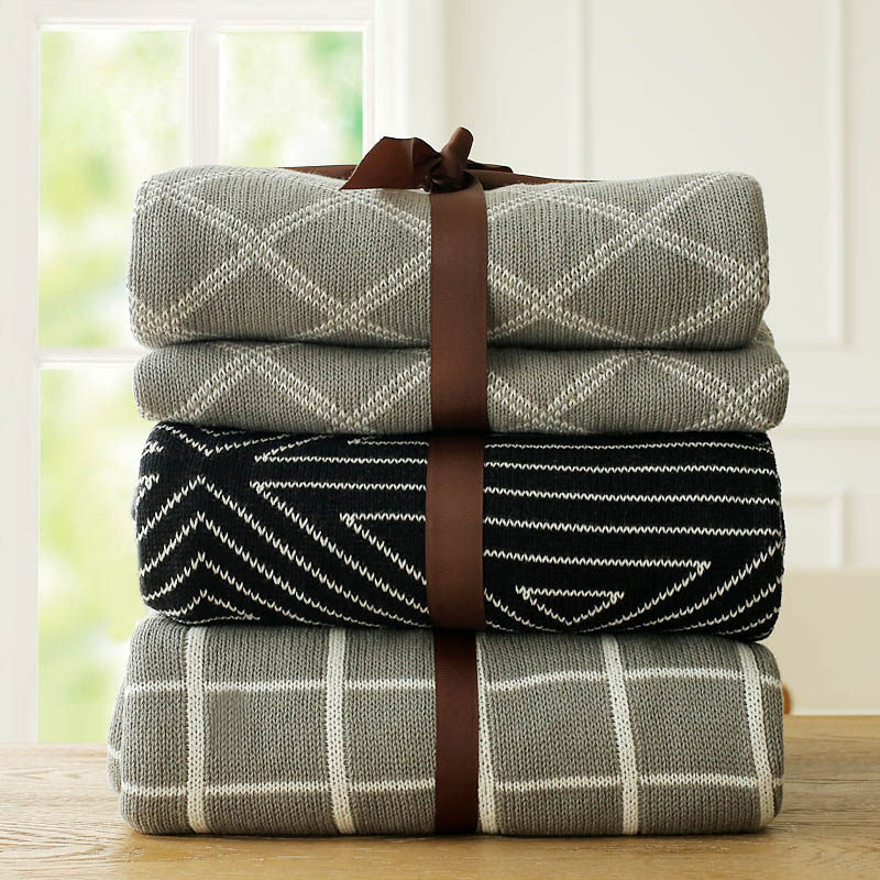 艾丽卡尔简约几何纯棉针织毯子AC0629-1