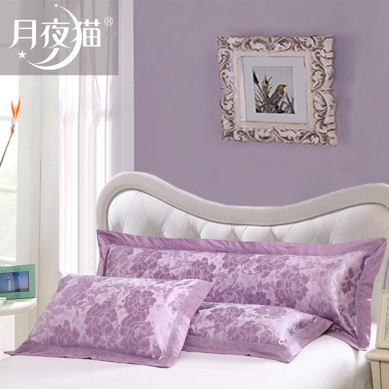 月夜猫双人枕套1.2贡缎长枕套XXF-1