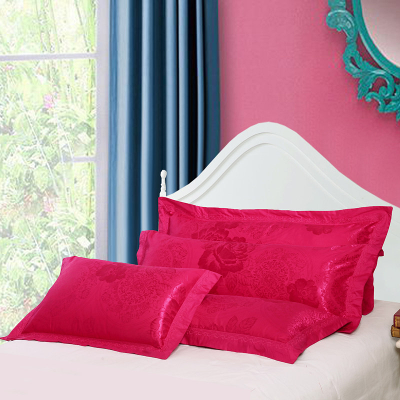月夜猫双人枕套全棉贡缎提花xxh-2