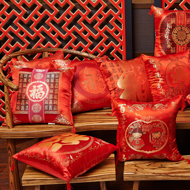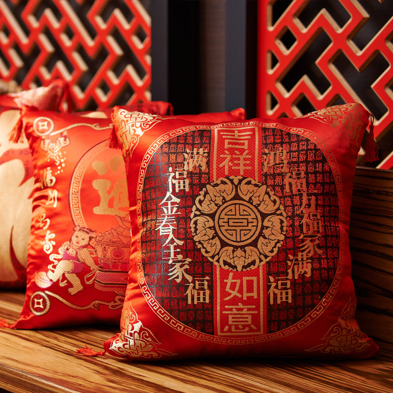 置家双面喜庆靠垫年货枕套1314