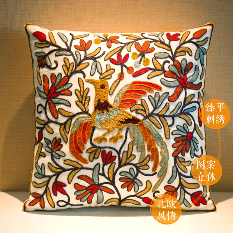 蓝松鼠刺绣花靠枕床头靠垫抱枕套400
