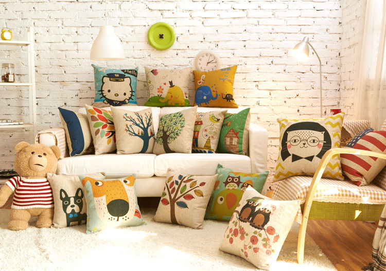 珍珠松卡通情侣床头靠背抱枕套麻抱枕套综合