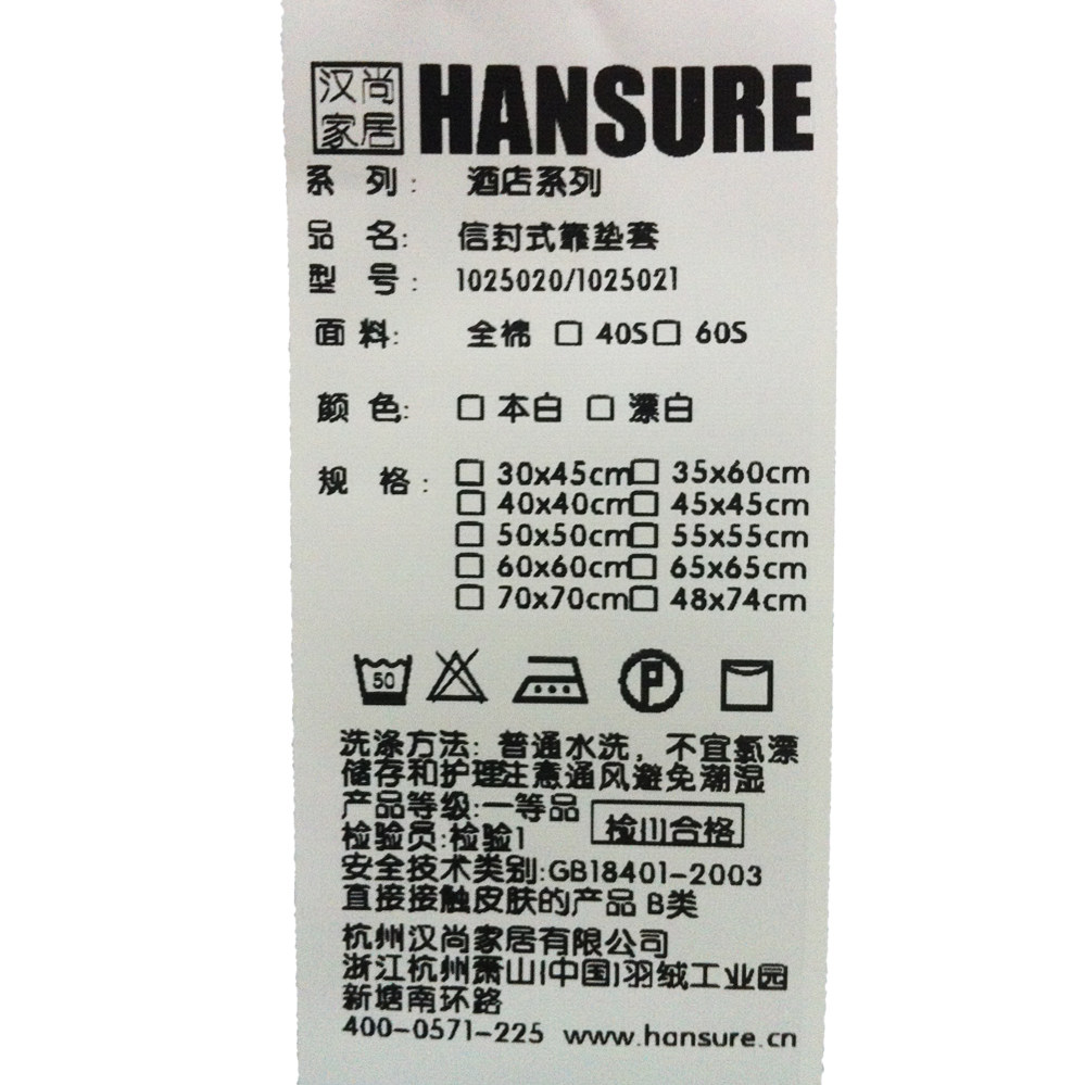 汉尚全棉60支白色酒店抱枕套1025021