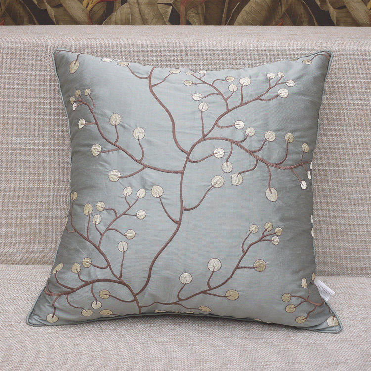 丝茉尔田园蓝色创意绣花床头抱枕套XK16