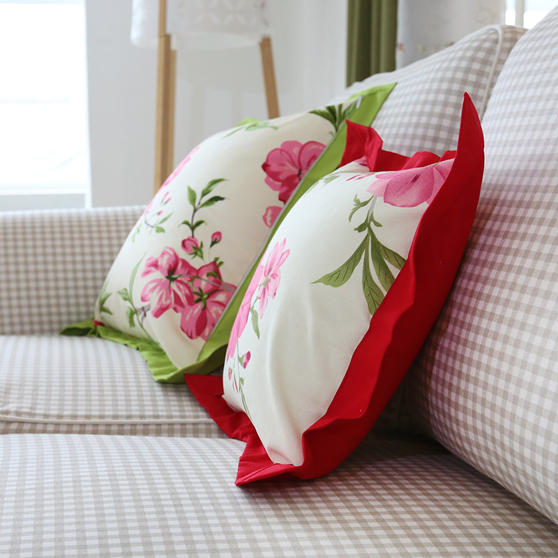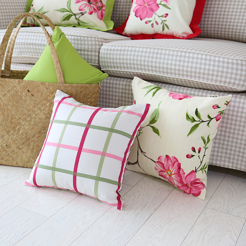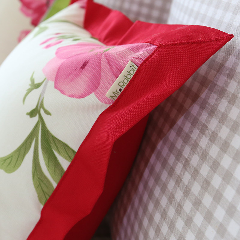 兔先生春夏田园纯棉花朵格子靠垫套MMHYKD