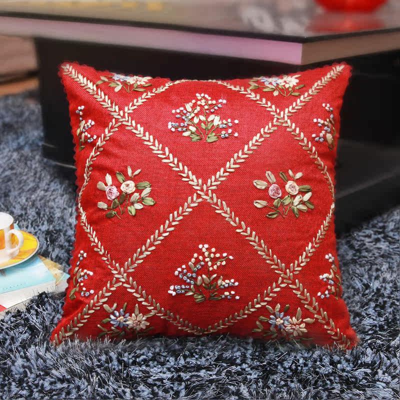 格兰蒙丝带绣手工花抱枕靠垫枕套gz02