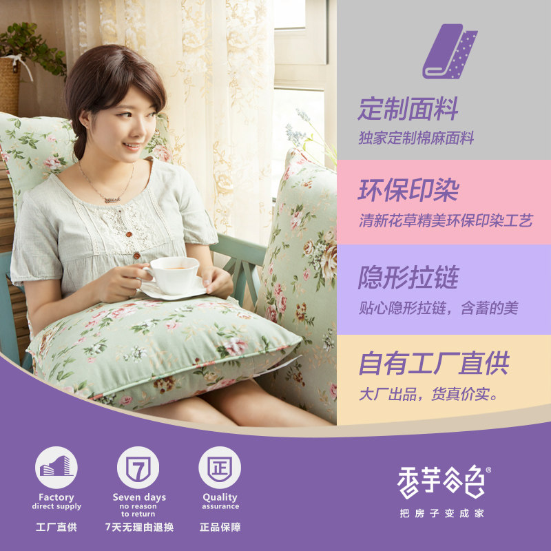 香芋谷色日式田园印花靠枕套A257