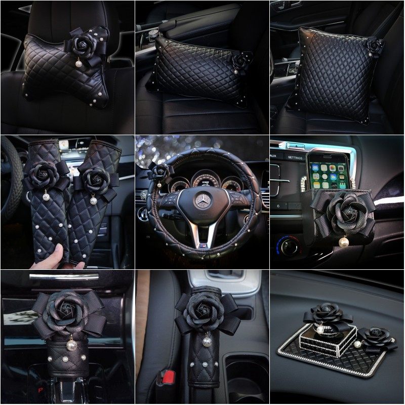 普晶山茶花汽车内饰方向盘套烫钻抱枕