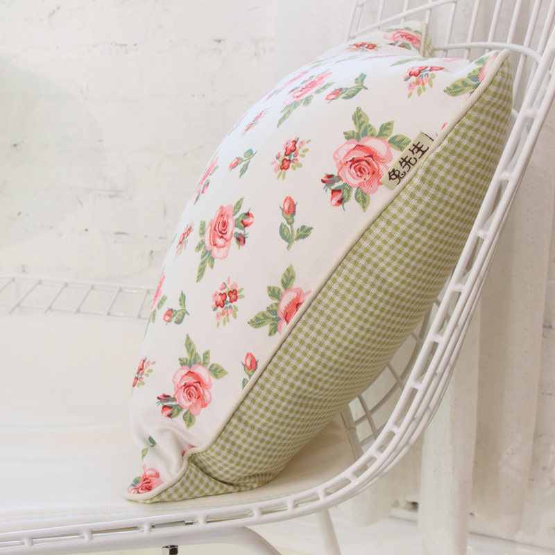 兔先生纯棉田园格子花朵抱枕套XYMGKD