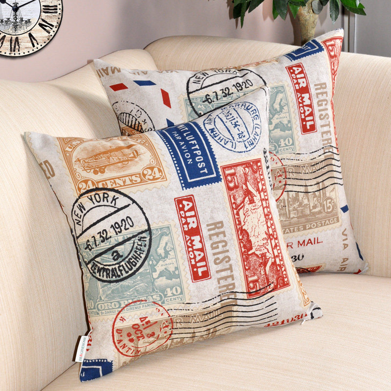 依曼琪美式乡村全棉帆布印花沙发靠垫套FZ-1017