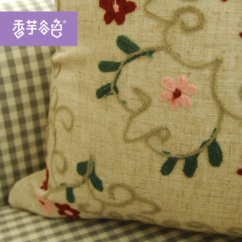 香芋谷色刺绣沙发靠枕欧式抱枕套A936