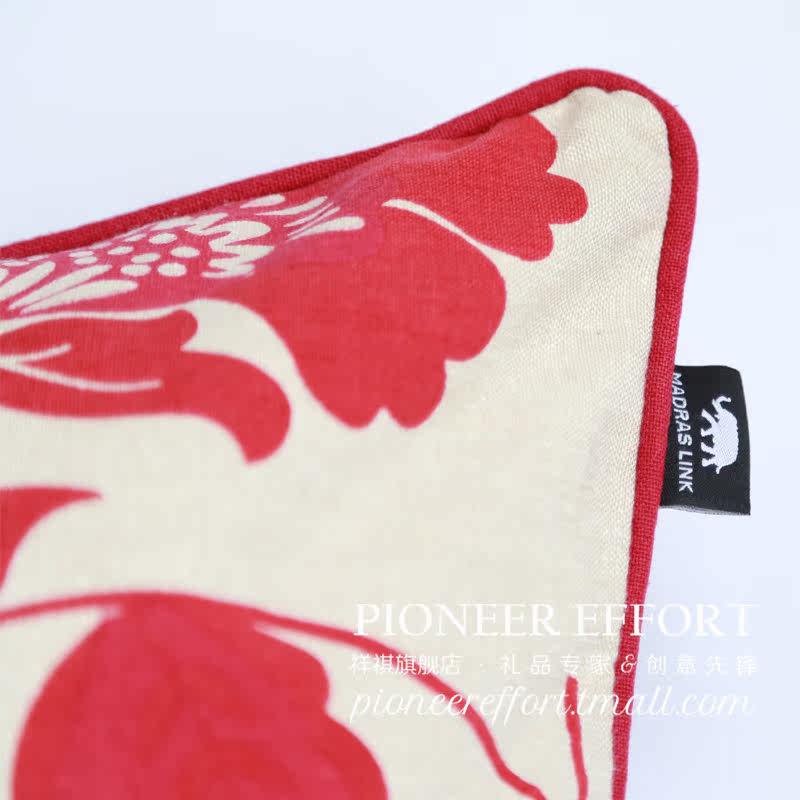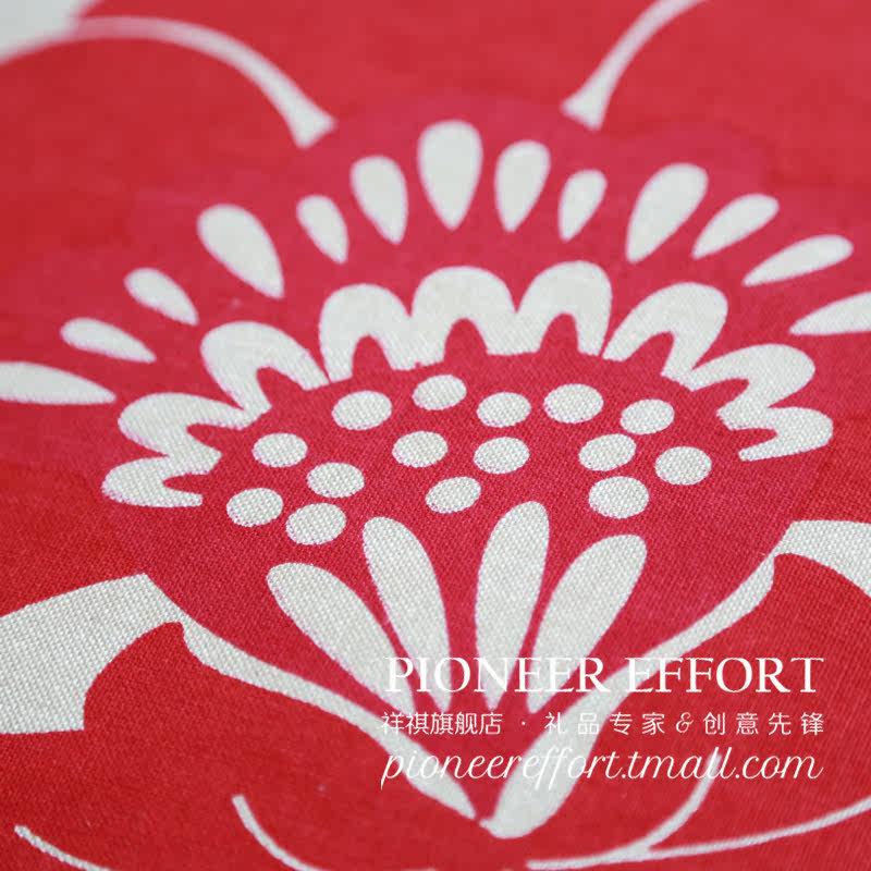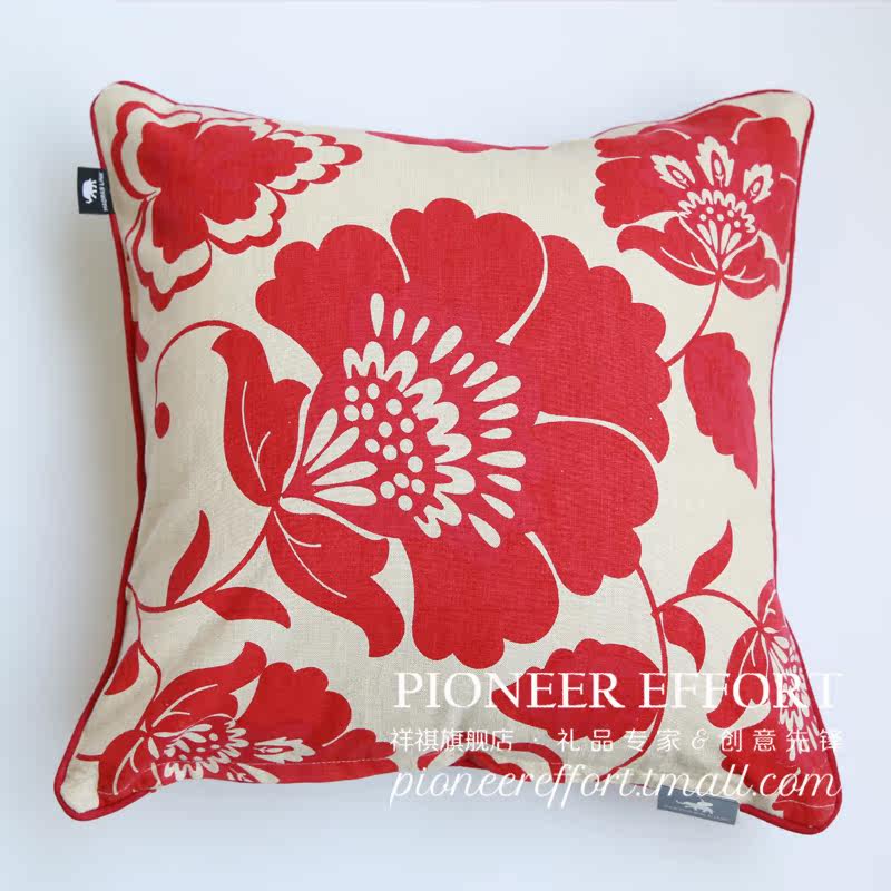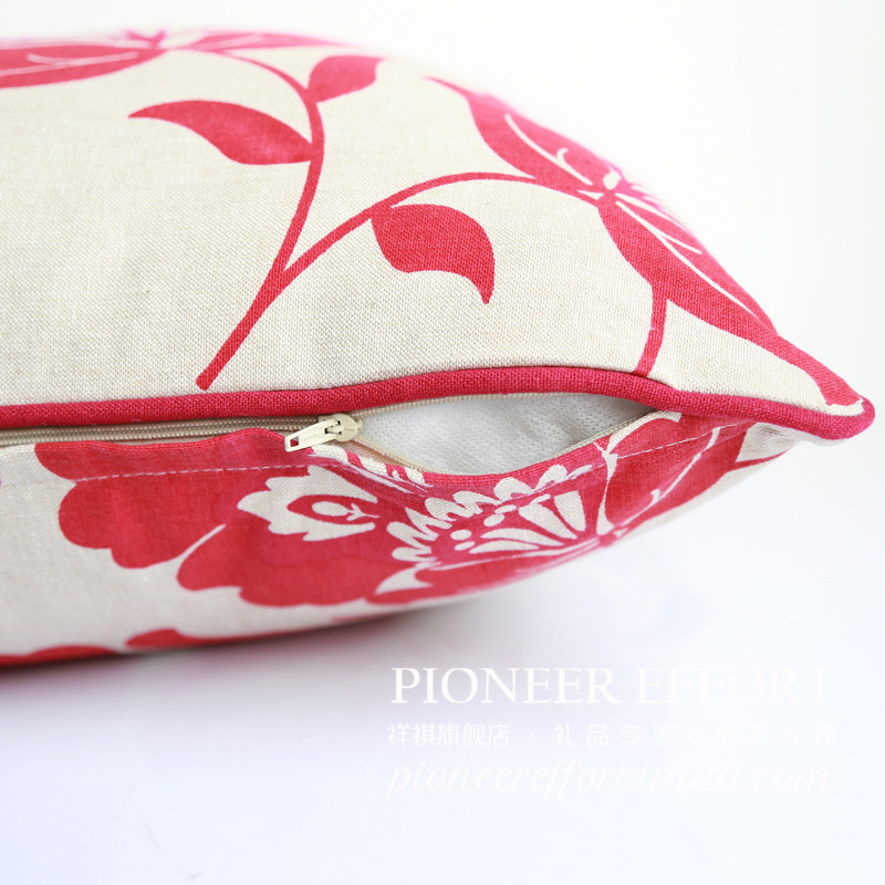 祥祺红色花朵纯棉沙发靠枕套PE-1300071