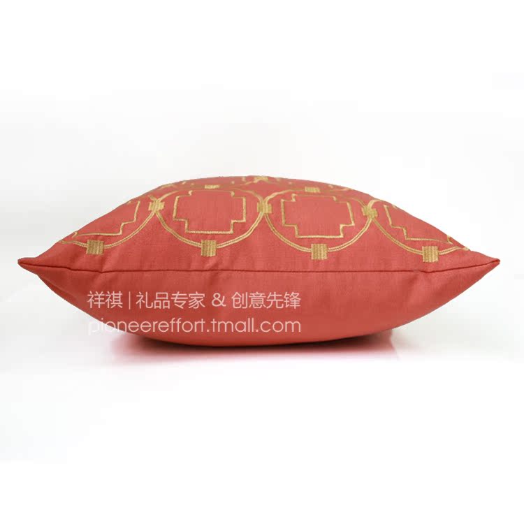 祥祺亚椒红色刺绣沙发靠枕套PE-1300030